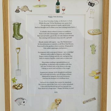 Word of Mouth poems have been going strong for 10 years, and it continues to be a joy to be part of so many special occasions. It is a pleasure to write a bespoke poem as they always elicit a beautiful, emotional response (am yet to find a recipient who does not cry!), and to date they have been used as readings in churches, given as toasts at birthday dinners, offered as gifts at baby showers and delivered as speeches at weddings, to name a few. Bespoke poems start at £75 - to find out more, please fill in the short form by clicking the button below.